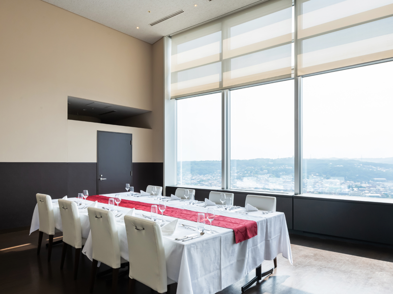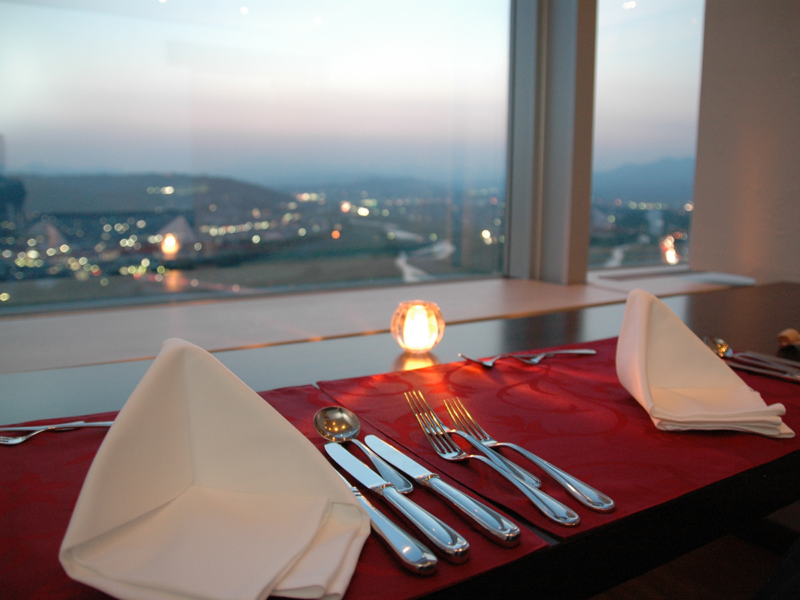 高崎市役所21階展望レストラン「アートマルシェ」 地上100mの位置から上毛三山を眺めながら地産地消の食材をご堪能いただけます。 窓側席は個室タイプとなっており横並びで座れる「カップルシート」は人気のお席タイプとなります。
