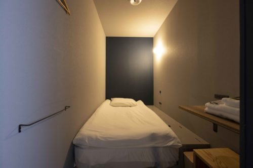 堅牢なコンクリートの建物を、きびしい自然に対峙する人間の砦ととらえ、都市の人々を迎え入れる拠点としました。焚火を介し、他者への理解を深めたところで大切な内省と自己理解。個室型キャビンとなったシェルターは離合(他者との会話、個の内省を繰り返すこと)に最適な場としてデザインされています。
