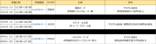 ※開催場所の調整状況や新型コロナウィルスの感染状況等により、「出張申請受付」及び「出張申請サポート」の開催を中止・延期、または実施内容が変更となる可能性がございます。