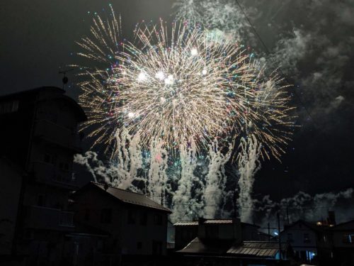 19時30分から、約50分間で15,000発の花火が打ち上げられた。打ち上げ当初はあいにくの雨模様だったが、次第に弱まり高崎の街を彩る花火がきれいに眺められた。