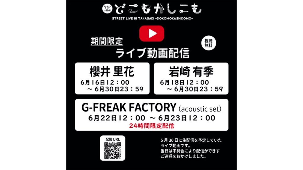 群馬県高崎市にて開催されているイベント「ストリートライブ in 高崎 どこもかしこも」は、今年も5月30日に開催が予定されていましたが、新型コロナウイルス感染拡大による影響でストリーライブは開催が中止に。
