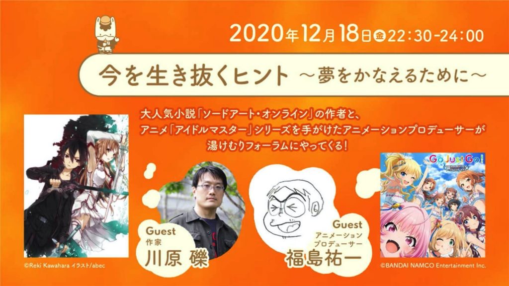 「ソードアート・オンライン」作者と、「アイドルマスター」アニメーションプロデューサーがトークショー『湯けむりフォーラム』2020/12/18に開催!