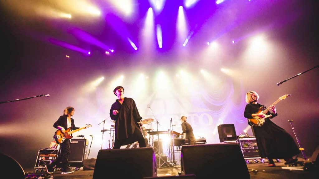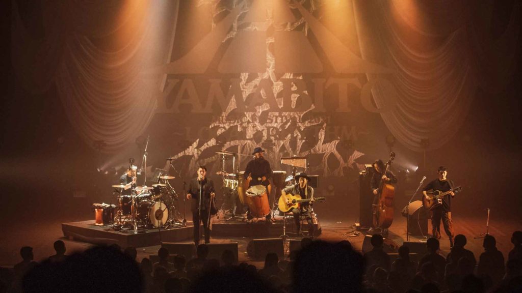 一曲目「SOMATO」から「乞え-KOE-」と、激しいパフォーマンスで会場を沸かす。この日のMCでは、「これが今年できる最大限の山人音楽祭です。」と語り、観客からは大きな拍手が送られた。情熱的なナンバー「Fire」からの「Too oLD To KNoW」で、会場はこの日一番の盛り上がりを見せる。続いて名曲「ダディ・ダーリン」を披露。
