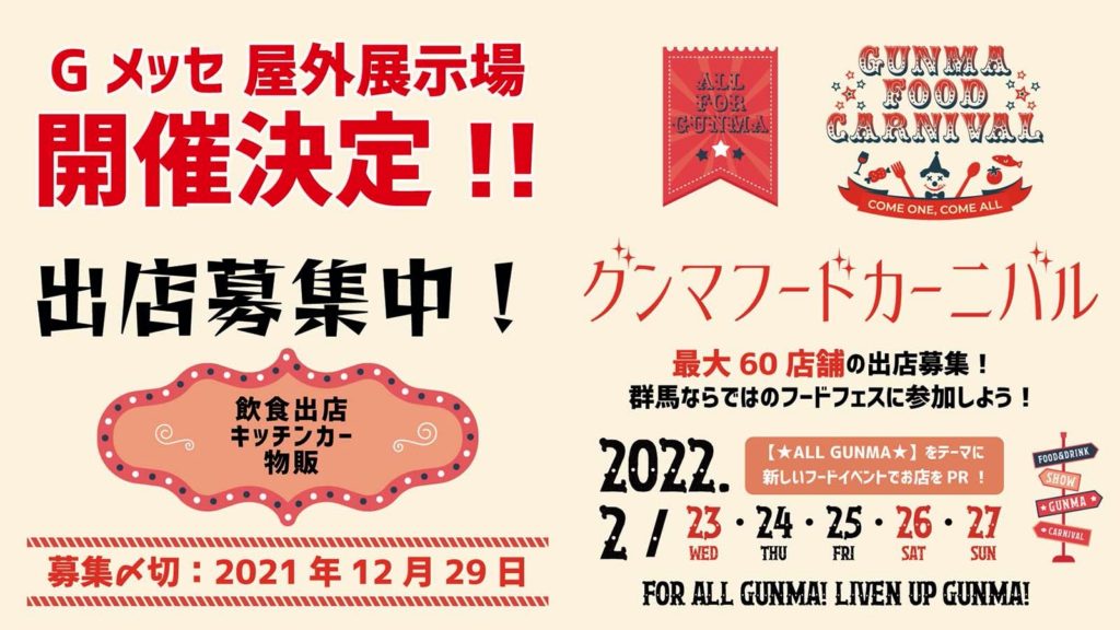【フードフェス出店者を募集中!】群馬の美味しいが集まった食の祭典『グンマフードカーニバル』が2022年2月に開催決定!