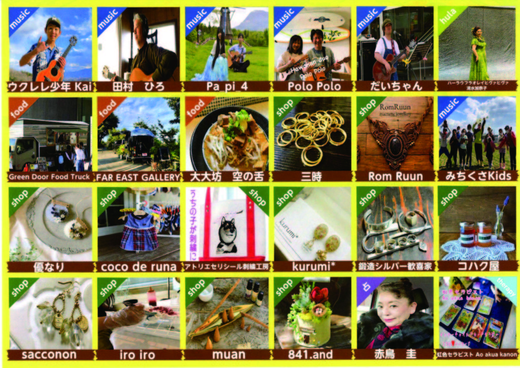 ヤシコバ Open caféの敷地を使った野外イベント「ヤシコバオープンフェス vol.1」が開催決定!15以上のキッチンカーやクラフトショップが出店する他、昨年オンラインで開催された世界大会「インターナショナルウクレレコンテスト」でケイキ部門(3歳〜11歳の部)で優勝した、小学生ウクレレ演奏のKaiくんや、各地で活動するアーティストの演奏も楽しめる内容となっています。
