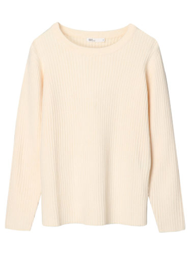 クルーネックリブニットプルオーバー
