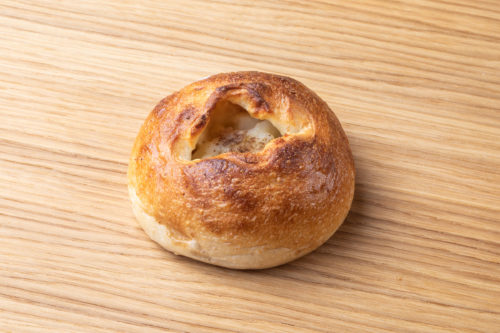 茹でたほくほくのじゃがいもとたっぷりのバター、シュレッドチーズが入ったコクのあるボリューム感のあるパンです。じゃがいもを生地にも練り込み、もっちり感を演出。温め直すとほくほく感が増し、まるでベイクトポテトがもちもちパンに包まれているような食感を満喫できます。