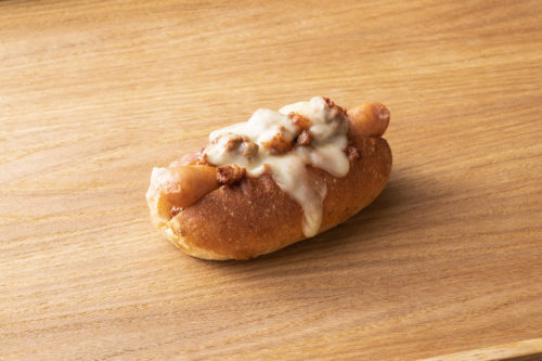 夏限定商品。マッシュポテトを練り込んだ生地に地元前橋のヒュッテハヤシのチョリソーをはさみ、自家製のスパイシーなチリソースとモッツァレラチーズを合わせました。スパイシーな味と中にごろごろ入っているひよこ豆の食感の取り合わせが絶妙です。