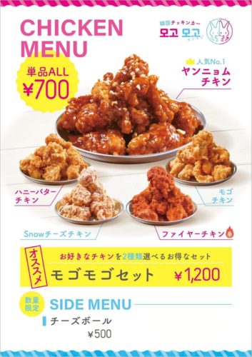 この機会にぜひモゴモゴの看板メニュー、今流行りのヤンニョムチキンを楽しんでみてはいかがでしょうか。