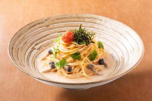 NO.1人気の和風明太子パスタ。隠し味の昆布茶が効いた、コクの深い仕上がりに。