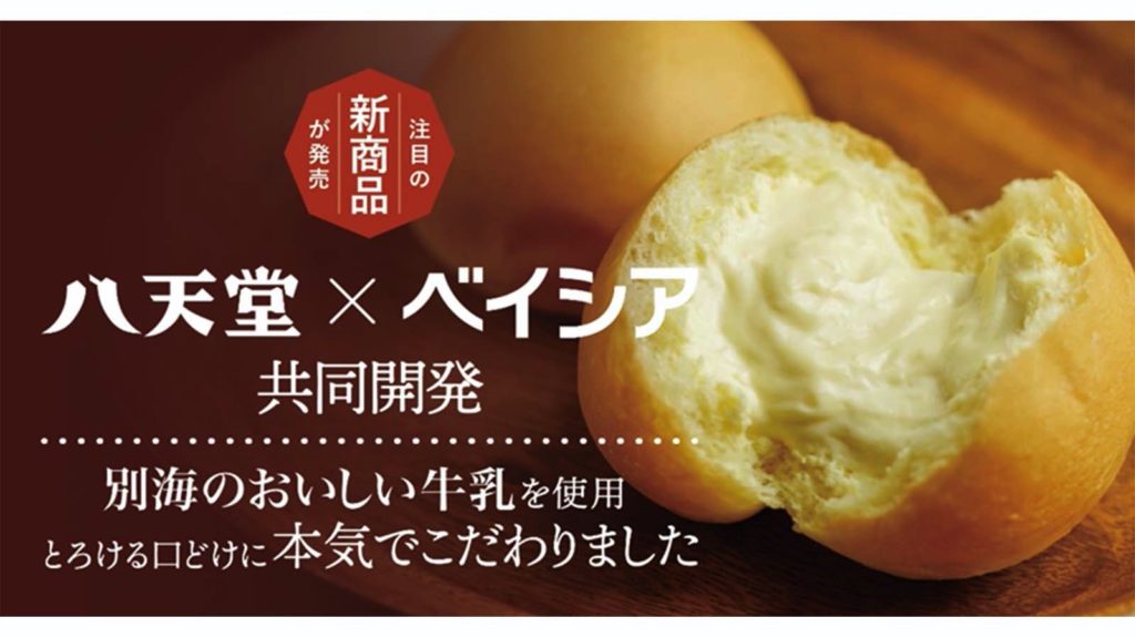くりーむパンの「八天堂」とスーパーの「ベイシア」が初コラボ!新商品【別海のおいしい牛乳を使用したくりーむパン】を共同開発。