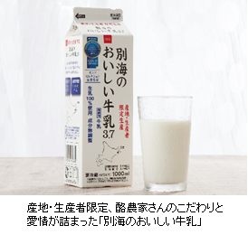 酪農家さんのこだわりと愛情が詰まった「別海のおいしい牛乳」をより多くの方に楽しんでいただきたいというベイシアの想いと、地域に根差した商品を通して地域・社会の課題解決に取り組みたいという八天堂の想いがマッチ。今回のコラボが実現した。