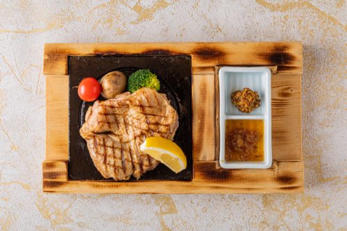 一、肉料理 信州福味鶏のステーキ、マスタード・ステーキソース