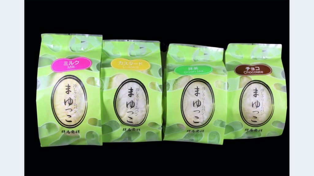 「冷やしまゆっこ」は白いまゆの形をした冷凍クリームパン。群馬の絹産業をPRしようと、まゆに見立てた白いパンを開発したことが誕生の由来です。