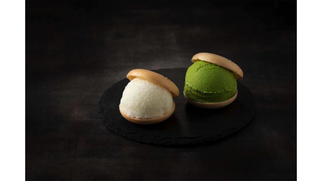 一枚一枚手焼きした最中でアイスをサンドしたアイス最中!ミルク味と宇治抹茶味の2種類を展開。