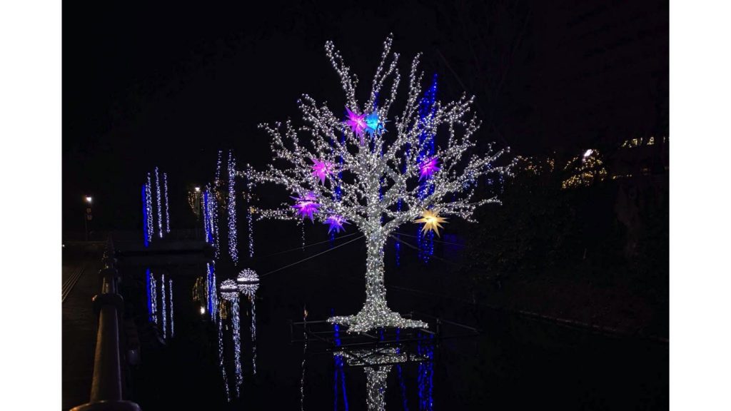 今回も前回に引き続き、慈光通りは光のアーチがかかり、天空から光が降り注ぐ演出を行います。イルミネーションは、高崎駅西口、シンフォニーロードから高崎城址のお堀までのエリアと広範囲に飾られている。