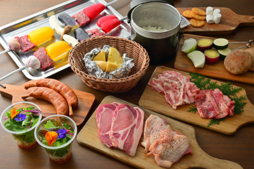食事は群馬県の厳選食材を堪能いただける自慢のバーベキューをはじめ、地ビールやワインなど豊富なメニューが用意されています。