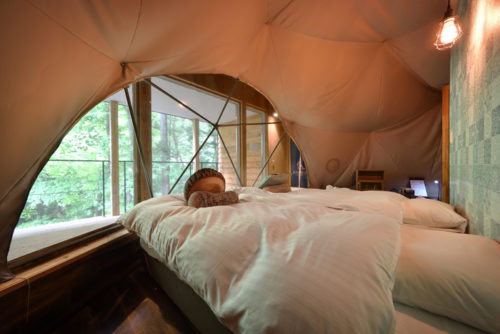 日本でここだけの露天風呂付温泉グランピング 「シマブルー」は、群馬の名湯・四万温泉の温かな湯と、快適な設備が整ったグランピングが融合した宿泊施設です。