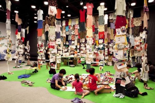 古着を素材として作品を制作する安部泰輔は、会期中展示室内で公開制作を行います。言葉アートを開発し芸術表現を開拓する星素子は、会期前から館林市内で活動を行い、地域の方々から集めた素材によるインスタレーション作品の制作や、公開制作を行います。