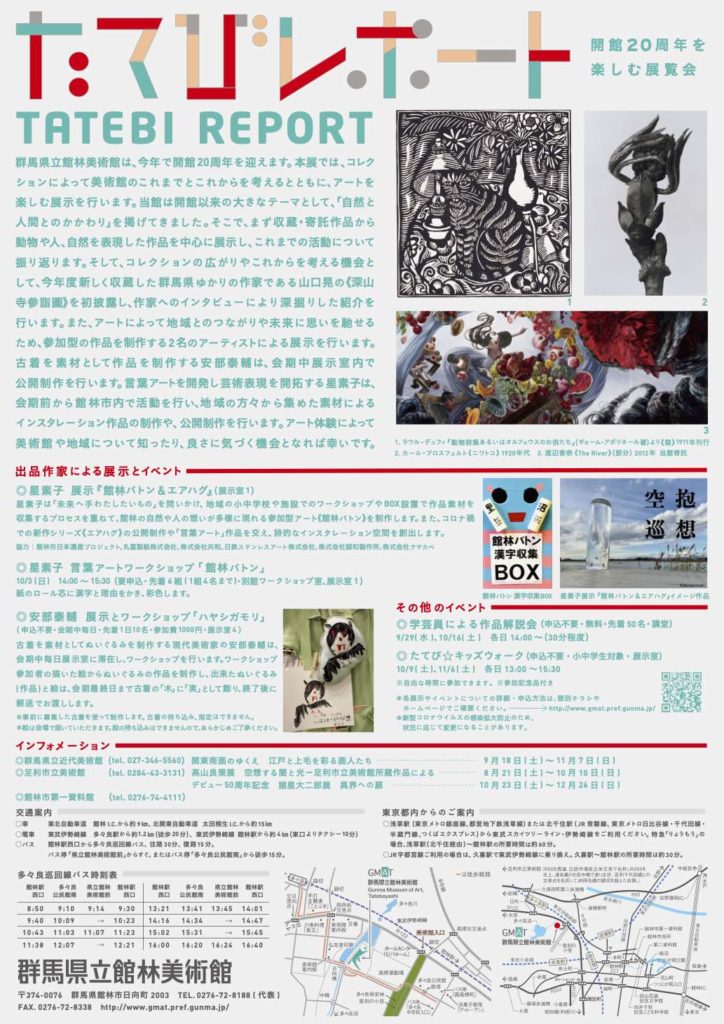 群馬県立館林美術館は、今年で開館 20 周年を迎えます。今回、開催が決まったたてびレポート-開館 20 周年を楽しむ展覧会-では、コレクションによって美術館のこれまで とこれからを考えるとともに、アートを楽しむ展示となっています。