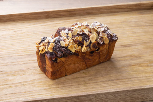 風味の異なる3種のレーズン(モハベ、サルタナ、サンマスカット)をダージリン紅茶のリキュールに漬け込んだ華やかな後味のパンです。パンオレの生地にアールグレイの茶葉と紅茶ダマンドを合わせ、しっとり感を演出。アーモンドスライスを乗せ、粉糖で仕上げました。週末の遅めの朝食やティータイムに濃い目の紅茶とあわせてお楽しみください。