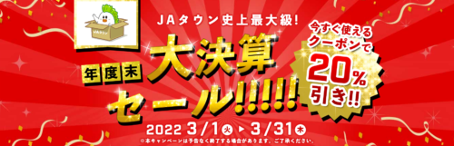 JA全農が運営する産地直送通販サイト「JAタウン」の「新鮮ぐんまみのり館」では、対象の商品が全品20%OFFで購入できる「年度末大決算セール」を開催中です。