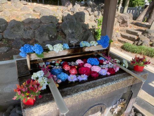 ※花手水は毎日行っているわけではございません。お花を頂いた時や境内のお花が咲いている時、期間を決めて行っております。次回期間を決めて行う予定は、6月30日から7月11日の予定となっております。