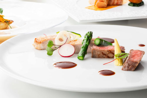 ※本プランは一皿に数品のお料理をまとめて盛り付け、料理の種類は減らすことなく、お客さまとの接触時間を短くする事による感染防止対策を施したメニュー構成となっております。