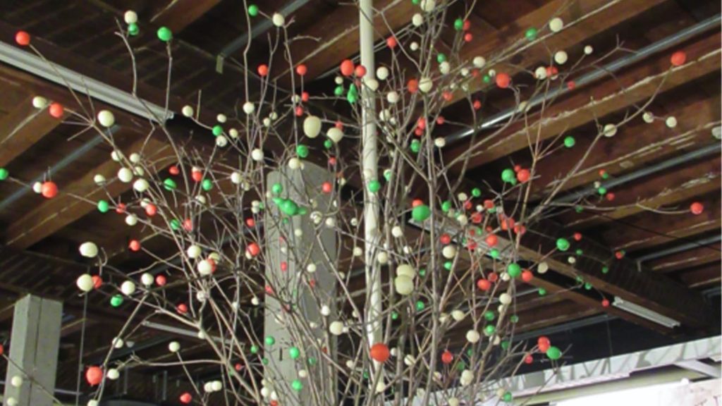 【伝統行事】赤・白・緑の可愛らしい飾りつけ! 小正月の繭玉が富岡製糸場で展示(17日まで) 豊作と無病息災、今年は新型コロナウイルスの終息も祈る。