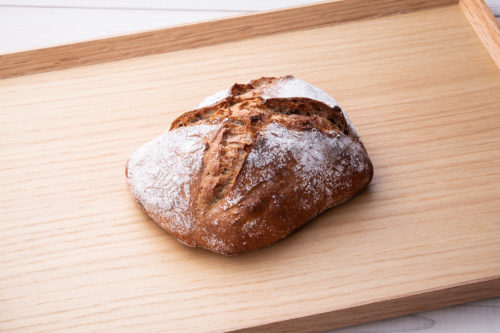 フランス語で「素朴」という意味の名のハード系のパンです。数種類の小麦粉をブレンドして作った生地を一晩寝かして熟成させ、高温で焼き上げ、皮は薄く、もっちり、しっとりとした味わいを楽しめます。イタリア産栗粉を入れ、隠し味のひとつとして甘く香ばしい香りをプラスし、濃い味に仕上がりました。