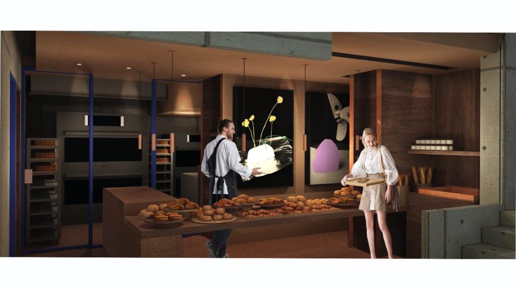 群馬で育った割田氏が、前橋の地域創生を掲げる白井屋ホテルの思いに共感してくれたことをきっかけに、このプロジェクトがスタートした。「白井屋ザ・ベーカリー」は、パン職人が心をこめて、日々バゲットから菓子パンまでさまざまなパンを店舗内の窯で焼き、まちなかのパン屋として長く愛される、行きつけの店になることをめざす。