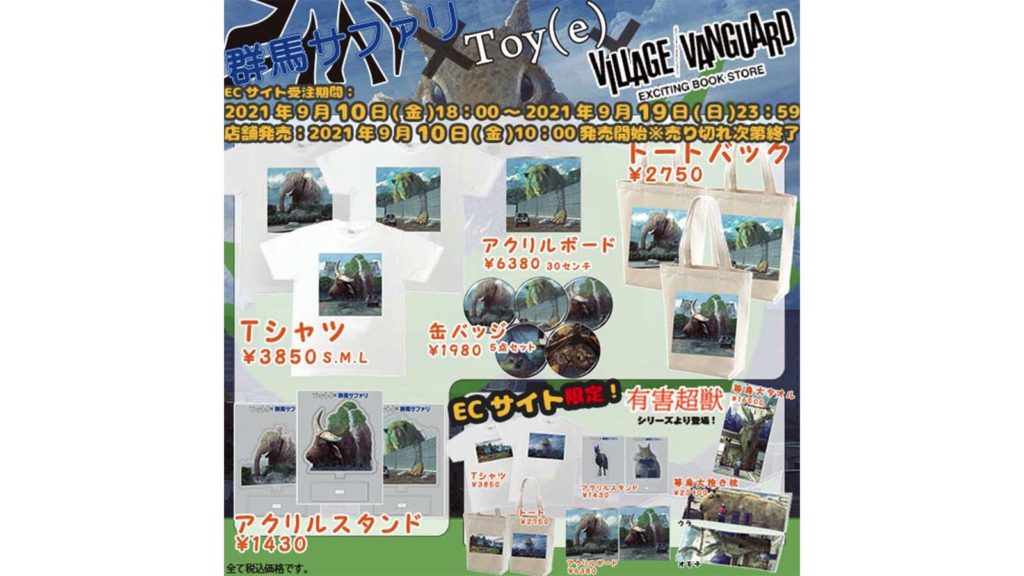 【群馬サファリパーク×Toy(e)×ヴィレッジヴァンガード】~コラボグッズ発売決定!~