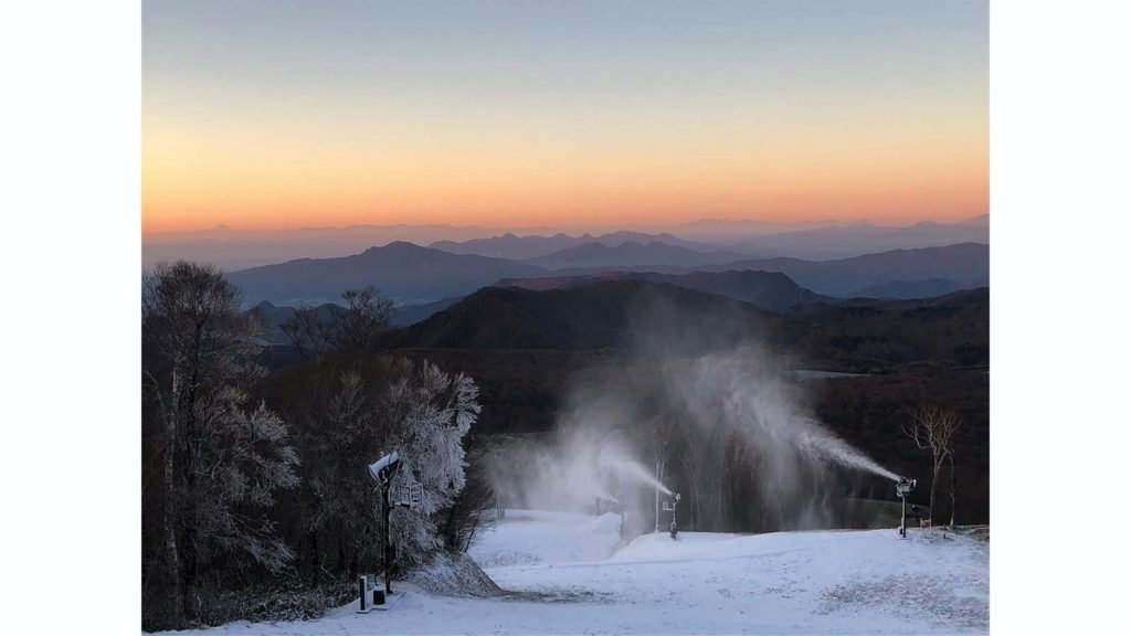氷点下2℃以下の気温で人工降雪作業が可能になり、センターコース(約1,450m)が滑走できるようになるには約72時間の降雪作業が必要です。