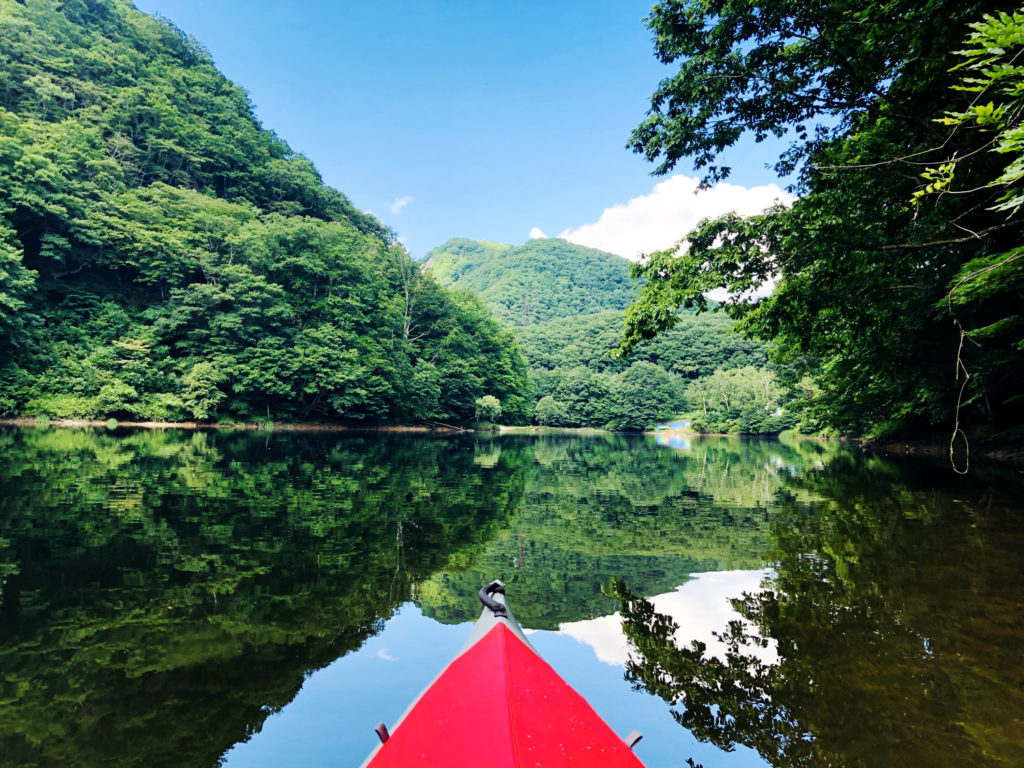 群馬県北部、吾妻郡にある四万湖(しまこ)は、その美しいコバルトブルーが印象的な穏やかな湖。日常の喧騒からしばし離れ、心地よいそよ風に身を任せ、 鳥のさえずりに耳を傾け、自然を熟知したインストラクターと共に、カヌーで湖上を漂うひとときを楽しむアクティビティプランです。
