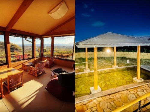 ②天然温泉「ばんどうの湯」と併設しており、宿泊者さまは、いつでも自由に好きなだけ入浴することができます。露天風呂からは、群馬の街を一望できる絶景を楽しむことができます。