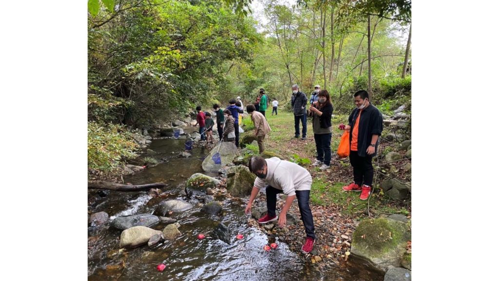 群馬県沼田市『THE FIVE RIVERS FINE GLAMPING群馬白沢』に新感覚味覚狩りが登場!川に流れるリンゴを網で捕まえるイベント〜川からリンゴどんぶらこ〜をゲスト様向けに開催いたします。