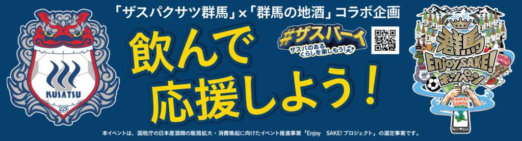 群馬県を本拠地とするサッカークラブ『ザスパクサツ群馬』は、群馬県酒造協同組合が進める「群馬EnjoySAKE!プロジェクト」とタイアップしたイベントを9月と11月に行う。山紫水明の地、群馬が誇る日本酒「群馬の地酒」を、スペシャルマッチと選手参加のオンラインイベントで盛り上げます。